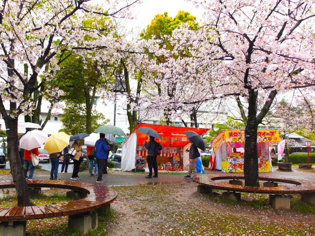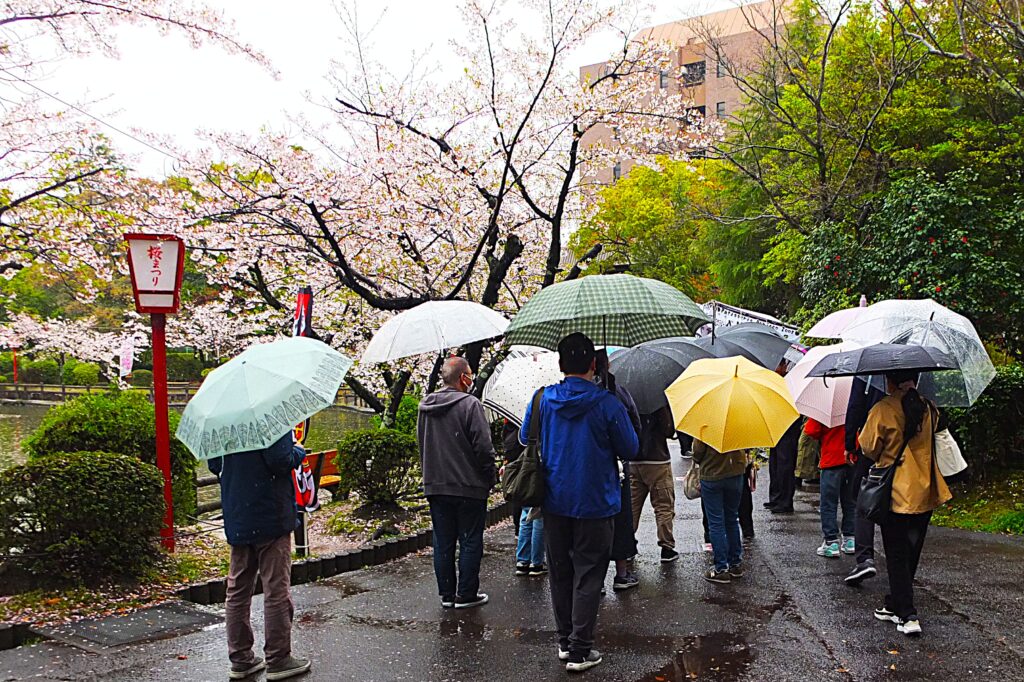 傘をさして足元に気を付けながら、ゆっくりお花見を楽しむことができました。