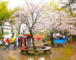 あいにくの雨でしたが、みんなでお花見に行きました。